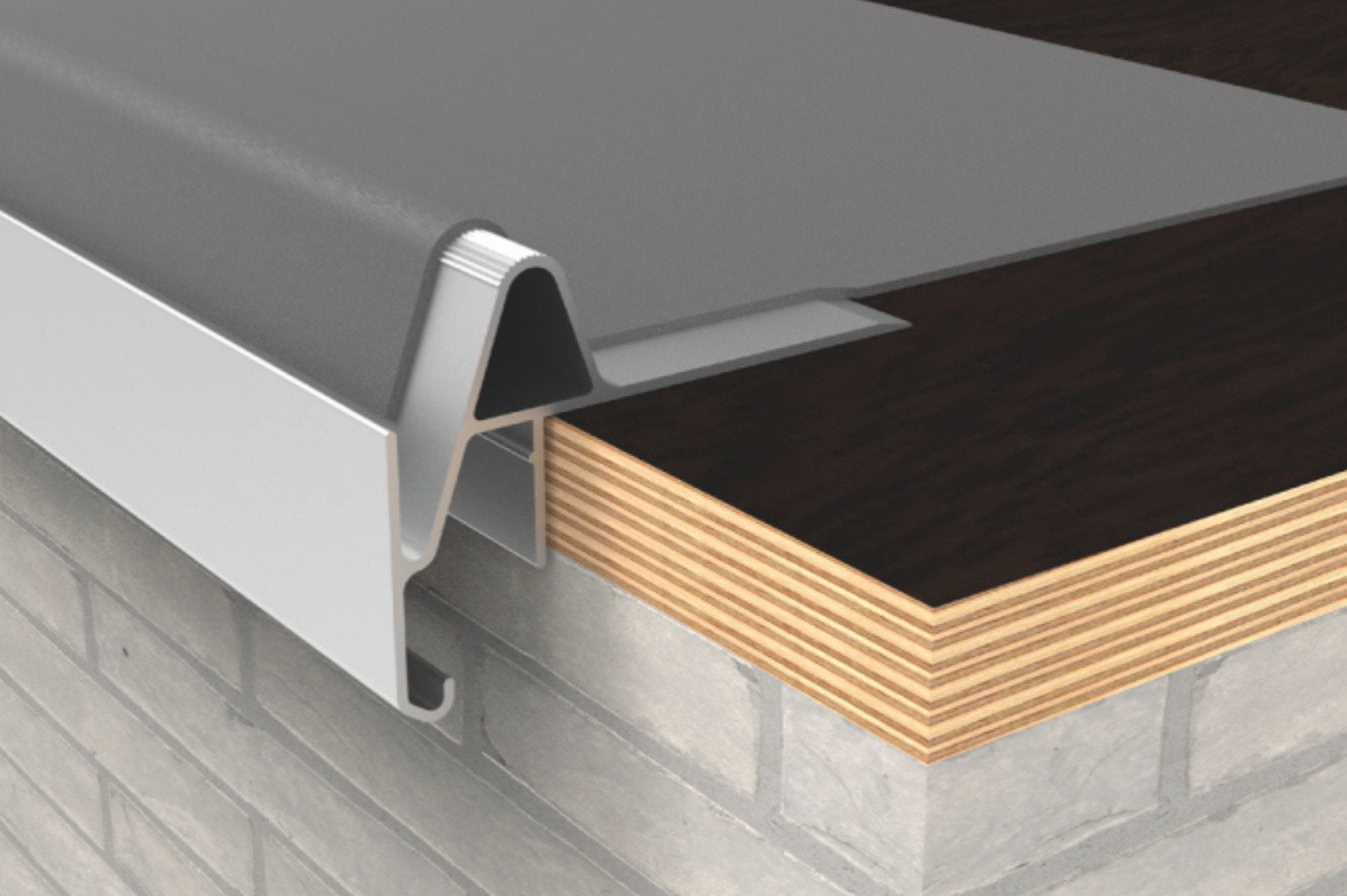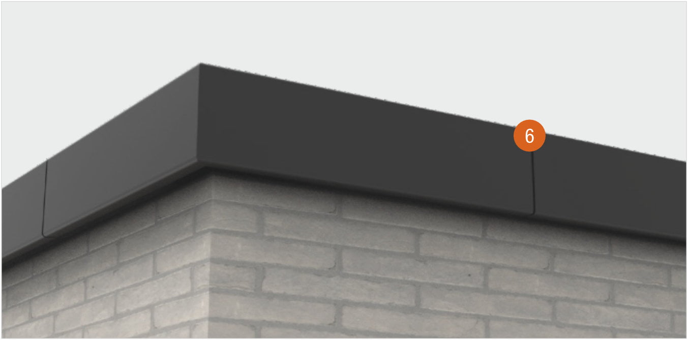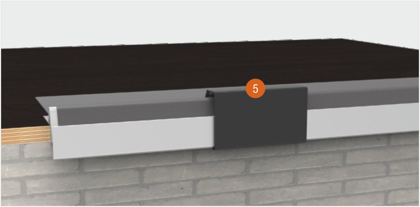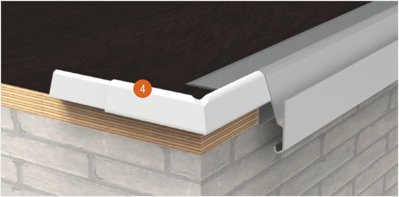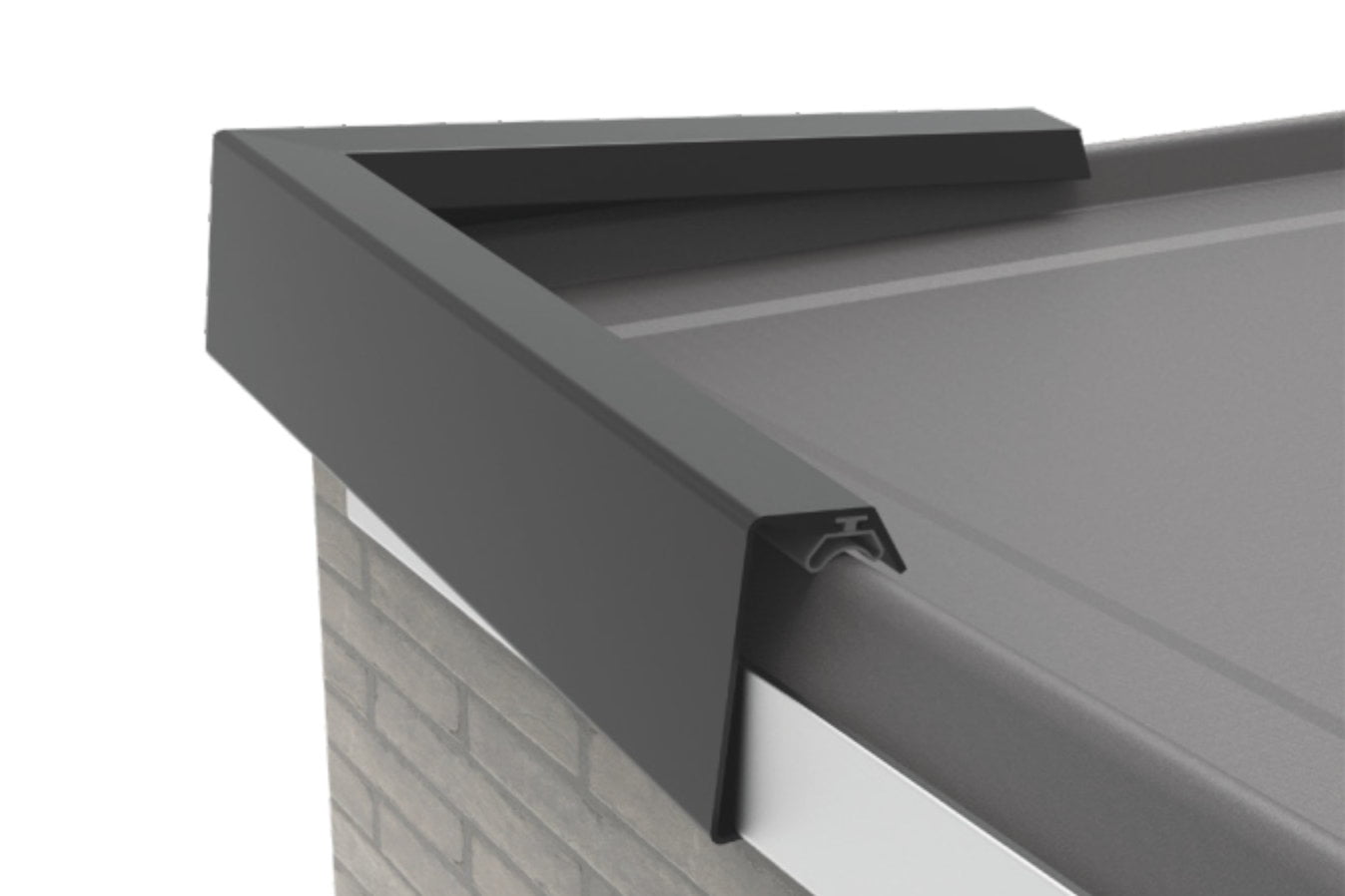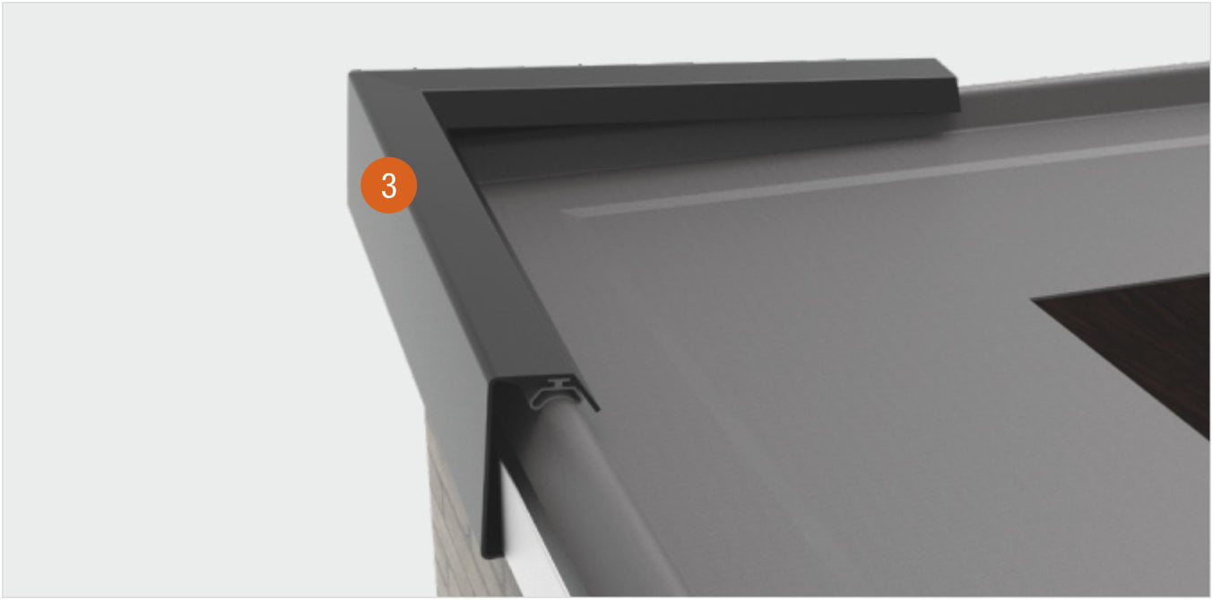 Do obróbki narożników wewnętrznych i zewnętrznych przewidziano wygodne akcesoria. Łatwe mocowanie narożne wsuwa się w profil podstawy w narożnikach, zapewniając perfekcyjne połączenie. Oznacza to, że nie trzeba piłować narożników, nie jest potrzebna piła ukośna. Po wodoszczelnym wykończeniu krawędzi dachu profilem podstawy, listwa maskująca jest zatrzaskiwana na profilu podstawy. To wykończenie, z aluminium lakierowanego piecowo jest pokryte odporną na gnicie gumą termoplastyczną, która zapewnia optymalne mocowanie membrany dachowej.