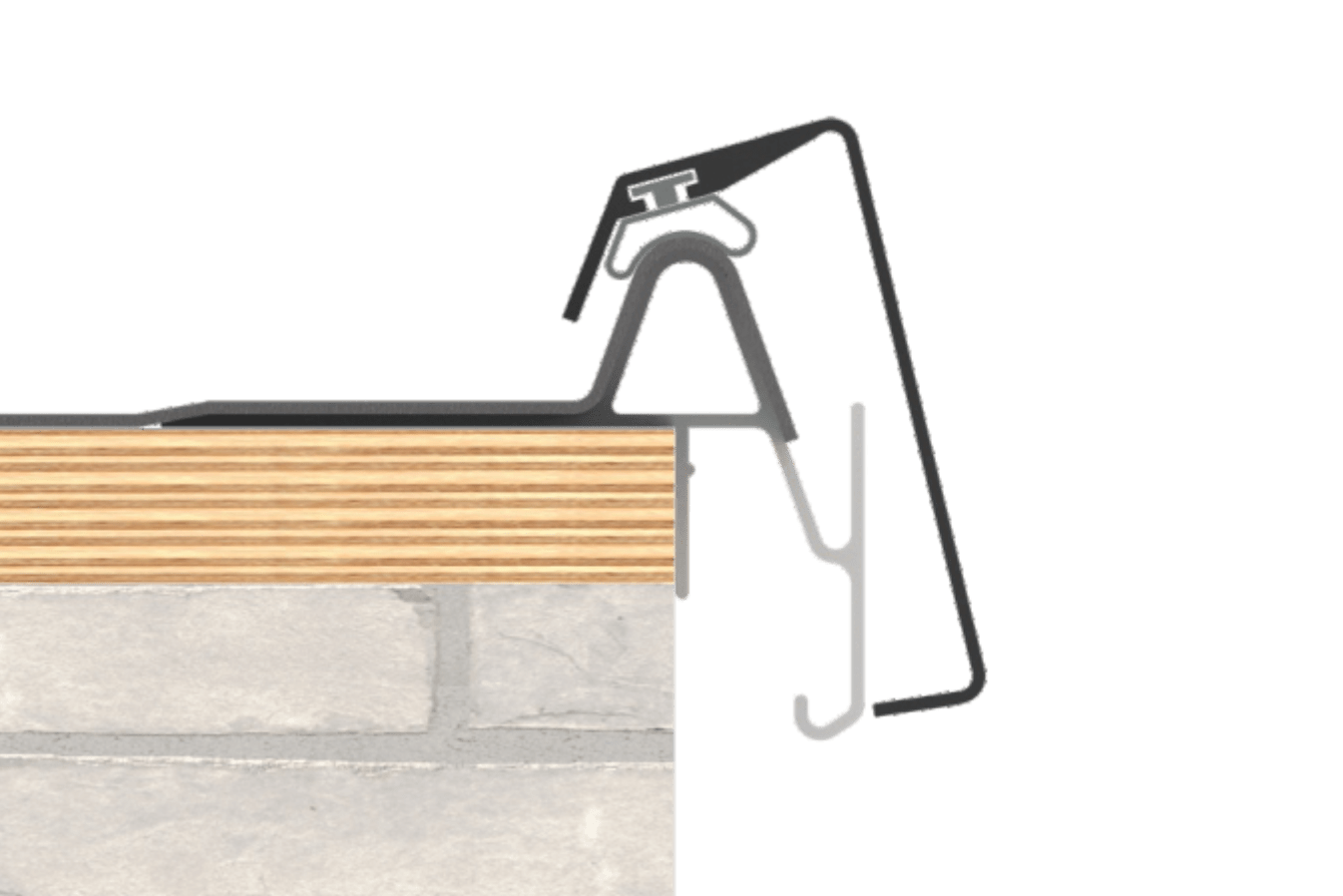Profil podstawowy i krawędź dachu łączą się bezpośrednio ze sobą. Zmniejsza to ryzyko przecieków pęknięć – uszkodzeń fundamentów lub ściany. Wewnętrzne fugi o długości 50mm zapewniają wodoszczelne wykończenie połączeń.